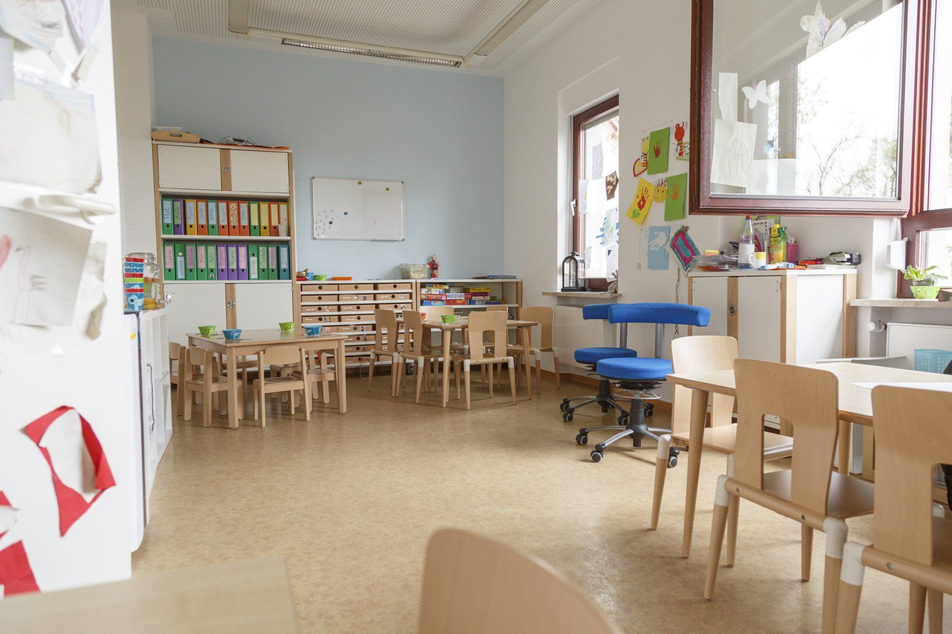 In unserem gemütlich eingerichteten Essensraum genießen die Kinder gemeinsam ihr Frühstück und Mittagessen in ruhiger Atmosphäre. Außerhalb der Mahlzeiten wird der Raum vielfältig genutzt – unter anderem für die Kinderküche, die Vorschulgruppe und kreative Aktionen.