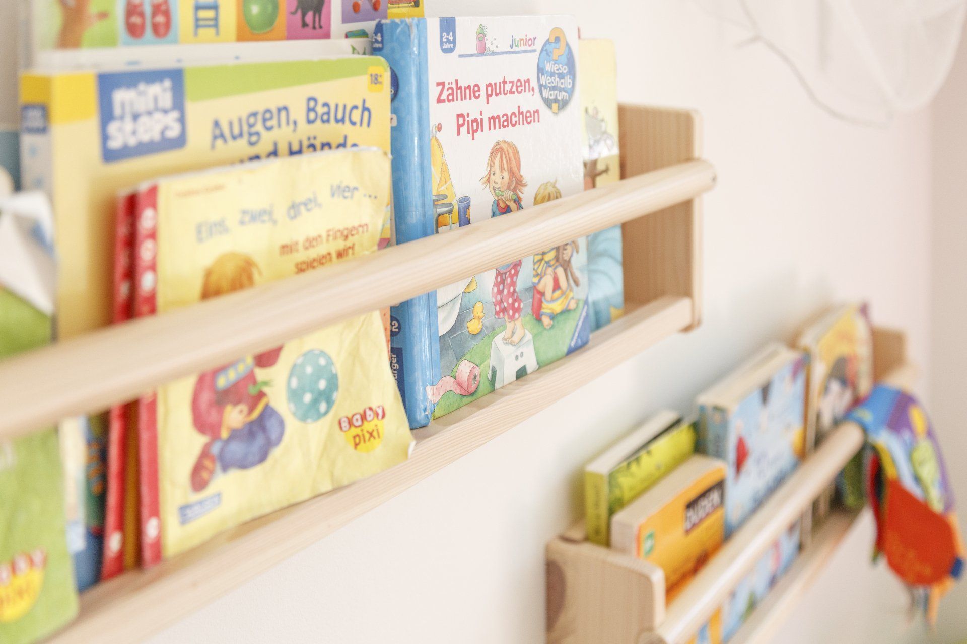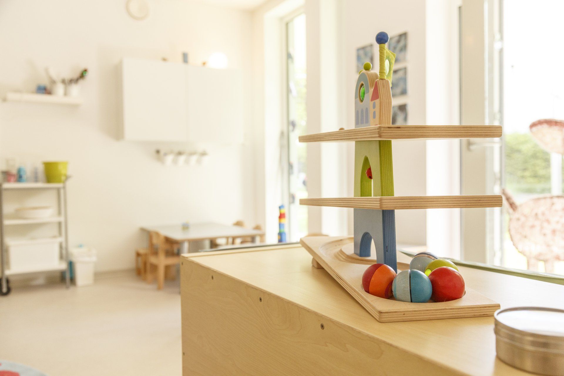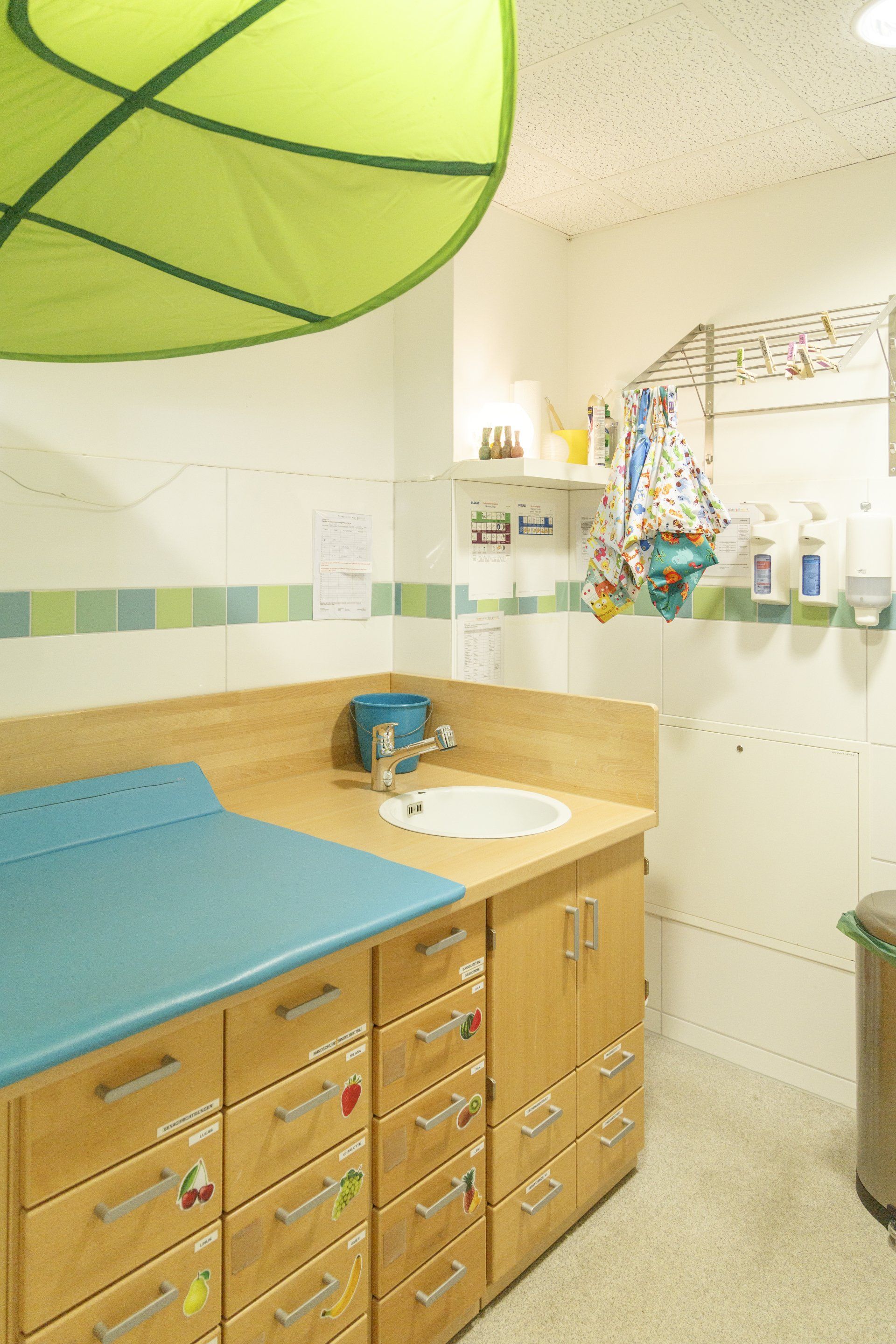 Jede Gruppe verfügt über einen eigenen Wickelraum mit zwei kleinen Toiletten und einem Waschbecken sowie einem großzügigen Schlafraum, der auch für besondere Angebote genutzt werden kann. Die Gruppenräume sind altersgerecht mit viel Liebe zum Detail eingerichtet und werden von den pädagogischen Fachkräften individuell gestaltet, damit die Kinder passendes Spielmaterial zur Schulung der einzelnen Sinne sowie Material, das zum Entdecken, Erleben und Spielen einlädt, finden.