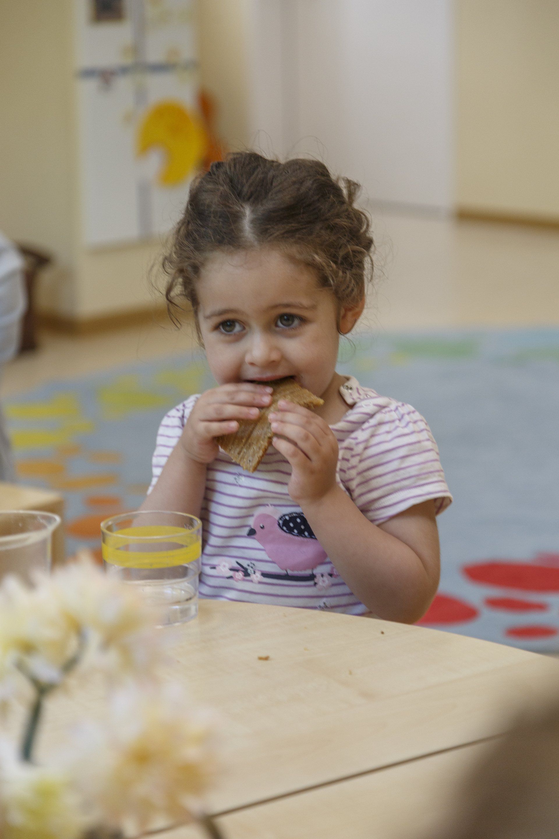 Für 90 Euro pro Monat erhält Ihr Kind ein gesundes Frühstück mit selbst gebackenem Brot, selbst hergestellten und gesunden Brotaufstrichen und Frischkornbrei sowie ein abwechslungsreiches, ausgewogenes und kindgerechtes warmes Mittagessen auf Bio- und Vollkornbasis und Getränke sowie einen Nachmittagssnack während der Betreuung.