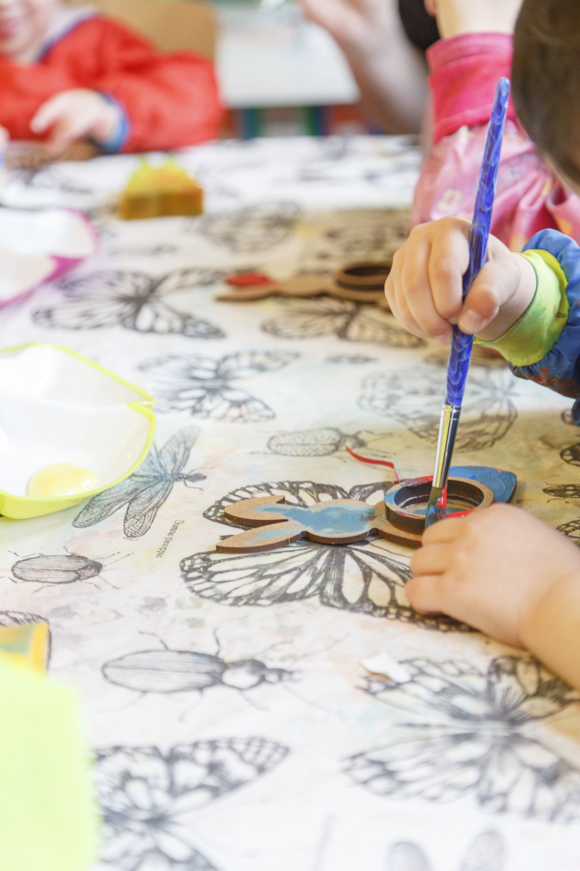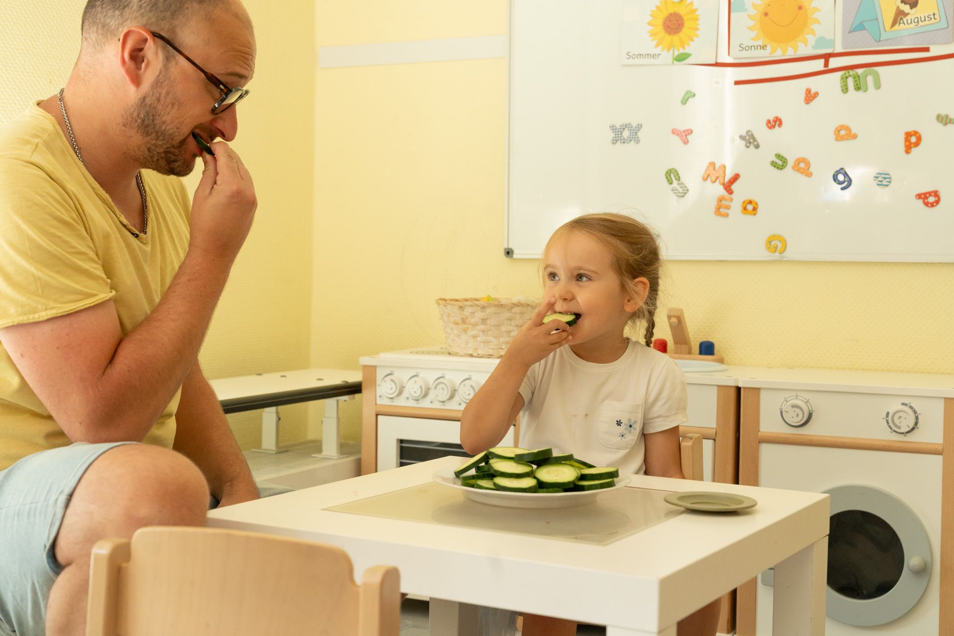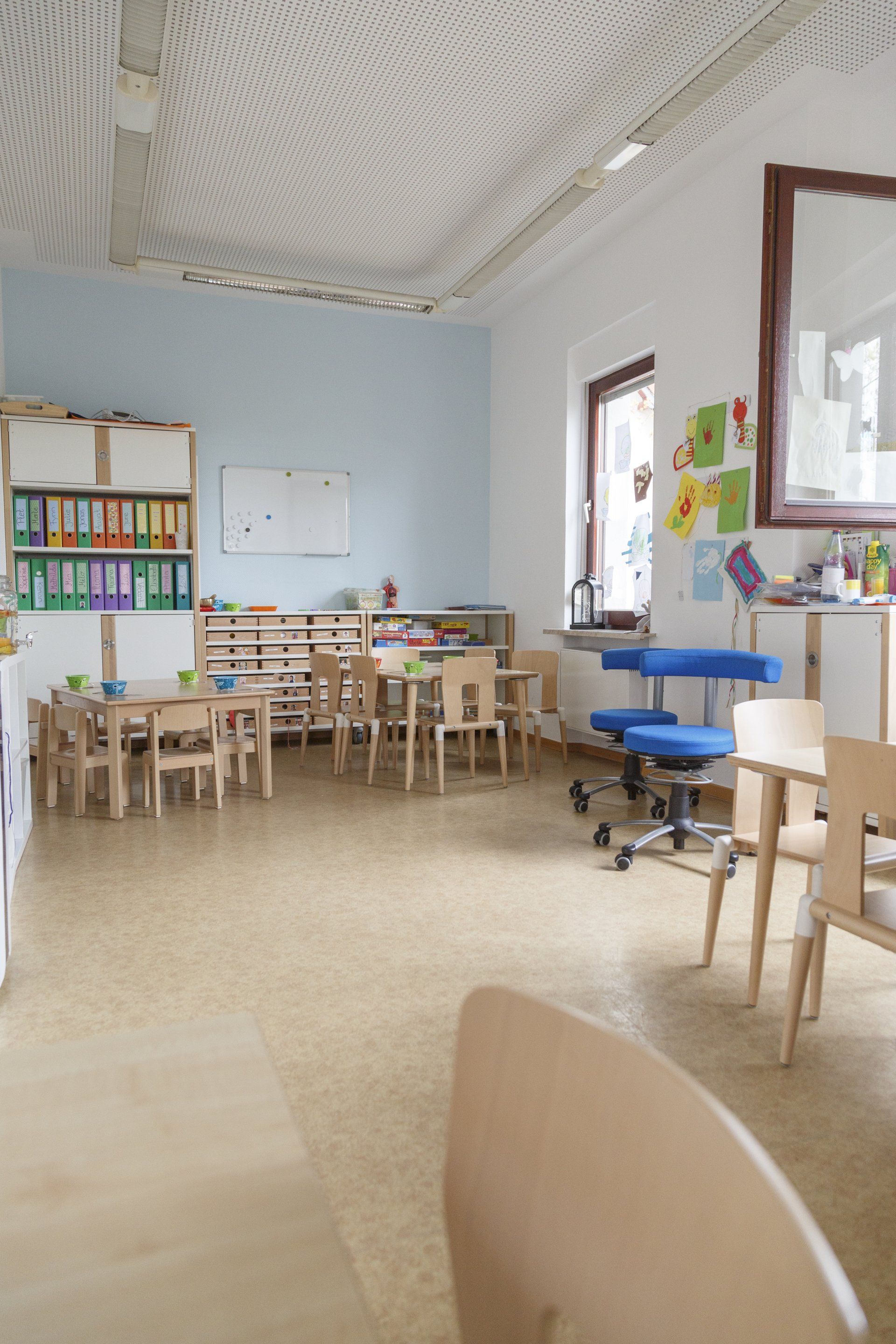 In unserem gemütlich eingerichteten Essensraum genießen die Kinder gemeinsam ihr Frühstück und Mittagessen in ruhiger Atmosphäre. Außerhalb der Mahlzeiten wird der Raum vielfältig genutzt – unter anderem für die Kinderküche, die Vorschulgruppe und kreative Aktionen.