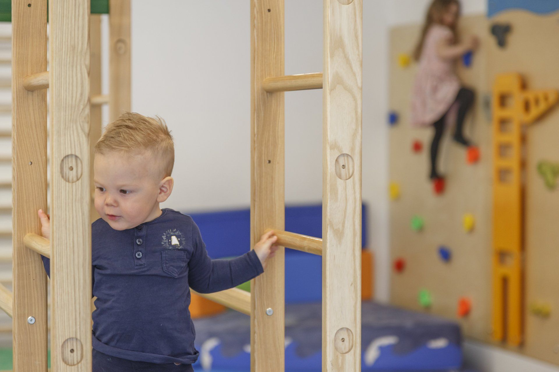 Die Räume der Kranich-, Bären-, Elefanten-, Giraffen-, Frosch-, Affen-, Känguru-, Löwen- und Delfin-Gruppen sind altersgerecht mit viel Liebe zum Detail eingerichtet und wurden von den Erziehern individuell gestaltet. Ihr Kind findet altersgemäß passendes Spielmaterial zur Schulung der einzelnen Sinne sowie Material, das zum Entdecken, Erleben und Spielen einlädt. Die Hochebenen bieten Anreize, sich motorisch auszuprobieren und auszutoben. Und die Höhlen laden zusätzlich zum Kuscheln und Rollenspiel ein. In der Kinderküche wird gemeinsam gebacken und gespielt. Im Turnraum werden Bewegungsbaustellen errichtet, es darf aber auch einfach nur getobt werden – hier gibt es viel Platz für Ihr Kind. In den Planschräumen soll Ihr Kind Erfahrungen mit dem Element Wasser sammeln. Schaumpartys, Spritztierchen und Seifenexperimente laden zum Spaß haben ein.