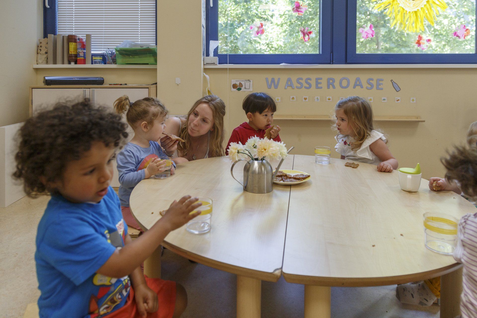 Für 90 Euro pro Monat erhält Ihr Kind ein gesundes Frühstück mit selbst gebackenem Brot, selbst hergestellten und gesunden Brotaufstrichen und Frischkornbrei sowie ein abwechslungsreiches, ausgewogenes und kindgerechtes warmes Mittagessen auf Bio- und Vollkornbasis und Getränke sowie einen Nachmittagssnack während der Betreuung.